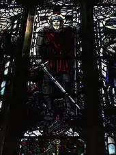 The church includes a stained glass window by Karl Parsons which was installed as a War Memorial in 1919 to the eight men from the village who died in World War I.[5] It is a three-light window with St George in the centre light, St Laurence in that to the left and St Agnes on the right. St Agnes holds a lamb.