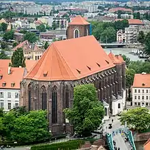 The Church of St. Mary on the Sand (Polish: Kościół Najświętszej Marii Panny na Piasku, German: Kirche Unserer lieben Frau auf dem Sande, Sandkirche) is a Catholic church in Wrocław, in Silesia, located on a small island in the Oder River, in the heart of the city. Founded in the 12th century, it is one of the oldest Gothic churches in the country.