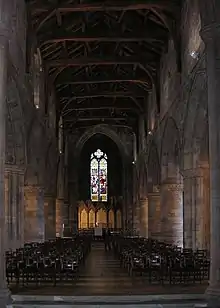 The Church of the Holy Rude (Scottish Gaelic: Eaglais na crois naoimh) is the medieval parish church of Stirling, Scotland. It is named after the Holy Rood, a relic of the True Cross on which Jesus was crucified. The church was founded in 1129 during the reign of David I, but the earliest part of the present church dates from the 15th century. As such it is the second oldest building in Stirling after Stirling Castle, parts of which date from the later 14th century. The chancel and tower were added in the 16th century.