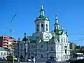 The Church of the Saviour, also known as the Church of the Image of "The Saviour Not Made by Hands" (Russian: Храм в честь Нерукотворённого О́браза Спа́са, Khram v chest' Nerukotvoryonogo Obraza Spasa) or shorter Spasskaya Church (Russian: Спасская Церковь, Spasskaya Tserkov), is a church in Tyumen, Tyumen Oblast, Russia, located at Lenin Street, 43, in a crossroad between the Chelyuskintsev Street. Built in a late 18th-century Siberian Baroque and early 20th-century neorussian style, the building is one of the oldest and most expressive churches in Siberia, which is under monument protection.