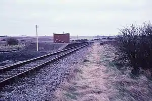 The station buildings consisted of no more than a simple wooden shelter and basic lavatories.[1] In order to provide deliveries of goods for the camps a small siding was built at the southern end of the station.[2]