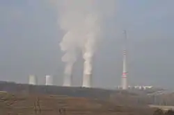 Chvaletice Power Station is a large lignite-fired power station at Chvaletice in the Czech Republic, owned by Pavel Tykač. Its installed power output is 4x 200 MW. Blocks 3 and 4 use a chimney which is 305 metres tall, built in 1977. It is the tallest free-standing structure in the Czech Republic.[1]