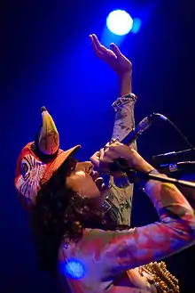 Cibelle works by building tracks live on stage, with special guests and audience members contributing to their "bric-a-brac DIY" sound through vocals, playfulness and instrumental experimentation. Since moving to Dalston, they have been working more with visual arts and performance, taking part in the abravanista movement with Rick Castro – also a part of Assume Vivid Astro Focus – and collaborating as a part of collective and artzine FUR, run by photographer Cássia Cabatini and artist/printmaker Fábio Gurjão.[4]
