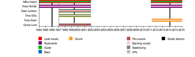 - Yuka Honda: sampler, sequencer, keyboard, piano, organ, synthesizer, harpsichord, backing vocals (1994–2002, 2011–2017)