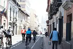 The Ciclopaseo is a project created by Biciaccion Foundation. It was administrated by this organization from 2003 until 2007, from there it was organized by the local organization Ciclopolis until 2017. Nowadays the local traffic law enforcement organisation (Agencia Metropolitana de Tránsito by the Spanish name) is administering the project. A route of 30 km running from the North to South of the city is closed to traffic every Sunday from 8 am until 2 pm to give preference to cyclists and pedestrians. The project is run in cooperation with the Municipality and features diverse locations of the city from Carolina Park, Ejido Park the Historic Center of Quito, Avenue Rio Amazonas, and The Panecillo.