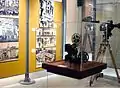 Exhibits include machinery, i.e. cine-cameras and projectors, old pieces of cinema equipment and attachments, cinema-film developing tanks, lenses, sub-titling machines etc., celluloid material (films, news reels etc.), photographs from almost two thousand films, gigantic, hand-produced cinema posters, the musical background to all cinema films circulated prior to 1995 on LPs and CDs, and a cinema archive.