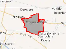 Cingia de' Botti borders the following municipalities: Ca' d'Andrea, Cella Dati, Derovere, Motta Baluffi, San Martino del Lago, Scandolara Ravara.