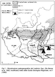 The territory of the park is classified as part of the Varesine Prealps, which are geologically significant and linked to the evolution of the Alpine Chain, which today appears as one complex structure with recognizable framed polyphasic tectonics deformations in the Plate tectonics model. The area of Mount Piambello is characterized by the presence of silicate rocks that originated about 290 million years ago from the multiple volcanic eruptions that took place in this area. In Valganna there are also deposits of travertine rock, locally called "Travertino della Valganna".[6]