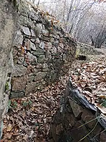 Several historic settlements have been identified in the park, some dated back to the prehistoric period. An old brewery, an example of the Liberty Architecture, is also located within the Cinque Vette Park.[5] The area gained relevancy before and during the First World War, because a line of forts, bunkers and trenches, originally named the Great North Frontier, was built through the park area. The building of the North Frontier began in 1862. It aimed at protecting the Italian Kingdom and especially the cities of Milan, Turin, Brescia, and Genoa (the port of Genoa, along with these other cities, was the main focal point for the Italian commerce and economy) from possible Swiss, German and Austrian invasions. The name of the fortification derives from the army general Luigi Cadorna, who supported the need and followed its construction during World War 1.[8] The main purpose of the Great North Frontier was defending the Italian territories from the attack of the Austrians, who had been in conflict with the northern Italian populations before, as in the Battle of Magenta. It involved a labor force of 40 thousand workers and hundreds of millions of old Italian Lira. None of these forts and war facilities were actually been involved in a battle until World war 2. The steel and cement line, later regarded by the historians as the Italian Maginot Line, is now become a peaceful and family friendly trail of the Cinque Vette Park, indicated by its name: the "Sentiero di Pace", literally "Trail of Peace".[9]