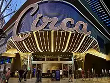 On January 10, 2019, the resort's name was unveiled as Circa Resort & Casino,[12][13] during a party at the Downtown Las Vegas Events Center.[2] The name is a homage to the history of Las Vegas,[14] including past casino builders such as Benny Binion, Jackie Gaughan, Jay Sarno, and Sam Boyd.[15] A video montage explained the resort's name, listing examples of earlier well known Las Vegas properties and their establishment dates and founders, such as, "Circa 1941, Jackie Gaughan, El Cortez. Circa 1951, Benny Binion, Binion's Horseshoe. Circa 1966, Jay Sarno, Caesars Palace. Circa 1969, Kirk Kerkorian, International." The video further stated that the announcement of Circa's name would one day be referred to as, "Circa January 2019." Other names were considered, including Overland, which was the original name of the Las Vegas Club; and The Mint, which was the name of a former property adjacent to the Las Vegas Club. Circa was scheduled to open in December 2020.[12][2] Derek Stevens intended for the resort to be opened prior to 2021 for tax advantages.[16][17]