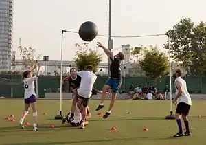 Circle rules football, commonly referred to as circle rules, is a team sport played between two teams of six with a large spherical ball similar to a stability ball. Invented in New York City in 2006,[1] the sport is currently played in cities across the United States, as well as in several international locations.[2][3]