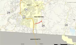 ![]() Map of Hillsborough County in southern New Hampshire with Circumferential Highway highlighted in red | |