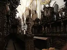 Baroque stalls are a truly beautiful feature of the church. They are an outstanding work of Silesian woodcarving. The oak, Renaissance stall shaft dates from 1567, the decoration is richly carved with acanthus and shells. The backrests, decorated with 36 reliefs depicting scenes from the life of Christ, were made of linden wood. After 1700, the abbot's and prior's boxes were added, and the entire structure was enriched with four pairs of free-standing statues of St. Gregory the Great, Eugene III, St. Jerome, Conrad de Poitiers, St. Benedict and St. Bernard.
