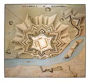 The Cittadella of Alessandria (Italian: Cittadella di Alessandria) is a star fort and citadel in the city of Alessandria, Italy. It was built in the 18th century by the Kingdom of Sardinia, and today it is one of the best preserved fortifications of that era. It is one of the few fortifications in Europe still in their original environment, since there are no buildings blocking the views of the ramparts, or a road that surrounds the ditches.