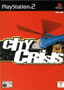 City Crisis (シティ クライシス, Shiti Kuraishisu) is a helicopter simulation developed by Syscom Entertainment, and published by Take-Two Interactive for the PlayStation 2. The players role in the game is a rescue helicopter pilot. The object of the game is to save civilians from fires that spring up around the city. The player must also put out the fires using water that is dumped from the helicopter. Each mission has a time limit, but the faster the player saves people and puts out fires, the more time they receive to complete the next part of the mission.