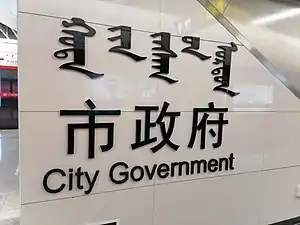 City Government Station (Chinese: 市政府站) is a station on Line 1 of the Hohhot Metro.[1] It opened on 29 December 2019.[2]