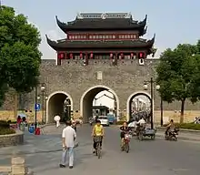 The City Wall of Suzhou (Chinese: 苏州城墙) is the city wall surrounding Suzhou city. The length of the wall was 15,204 metres before 1958. The majority of the wall was demolished in 1958. The length of the remaining wall is only 2,072 metres.[1]