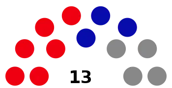 Cessnock City Council is composed of thirteen councillors, including the mayor, for a fixed four-year term of office. The mayor is directly elected while the twelve other councillors are elected proportionally as four separate wards, each electing three councillors. The most recent election was held on 4 December 2021, and the makeup of the council, including the mayor, is as follows:[8][12][13][14][15]