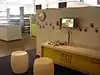 The design is not one that is found in a 'traditional' Library and features the use of vibrant colours, banks of music listening stations, Xbox game consoles, flat screen televisions displaying music and news channels and a see through staff work area.