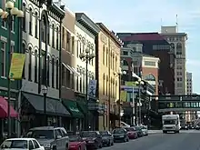Construction on Main+Rose was completed in 2007, featuring 96 residential condominiums with 25,000 square feet (2,300 m2) for retail ventures including Jimmy John's and Dunkin' Donuts.[12] The site, at 337 East Main, was formerly the Downtown Motor Inn,[2] abandoned in the mid-1980s. It was slated to become a Days Inn franchise.[15]