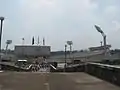 The Mexico '68 Olympic Stadium was built in 1952 and was used to host the 1955 Pan-American Games and the 1968 Summer Olympic Games in Mexico City. It is located on the Campus Central portion of the city, and its stands were built with excavated lava rock. These stands contain reliefs designed by Diego Rivera.[2] It was also used in the 1986 FIFA World Cup. Now it holds football matches for Mexico's City university league, as well as being the home stadium for the university's team in the Mexican Football League, the "Pumas". It also has a race track, used for international invitation-only athletic competition in recent times due to the success of Mexican athlete Ana Guevara.