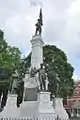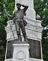 A Civil War Memorial stands in downtown Webster, Massachusetts in front of the town hall as one part of a series of war monuments called Honor Court. This memorial was dedicated in 1907 and consists of a central tower with a bronze statue of a soldier on top. Four other bronze statues of soldiers stand at each of the four corners: an infantryman, artilleryman, cavalryman, and sailor.[1]