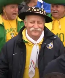 In the early 1990s, he founded the fan base "Gaúchos na Copa". Already known in South America, he gained great international fame after the semi-finals of the 2014 FIFA World Cup between Brazil and Germany.[1] After the defeat, he was photographed crying with the trophy in his arms. This picture of Brazil's "most sad fan" has been seen by many international media as a symbol of Brazil's historic 1-7 defeat in this semi-final. After the game, he gave his trophy, which he took for years to every game, to a German fan, but received it back for the next game.[2]
