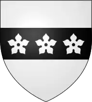- Arms: Argent, on a fess Sable three cinquefoils of the First