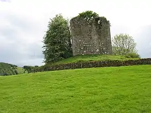 In about 1408 the Griersons acquired the lands of Lag, which became the principal seat of the clan chiefs.[3] Gilbert Grierson is described in a charter dating from 1420 as armour bearer to the Earl of Douglas.[3] Gilbert married Janet, daughter of Sir Simon Glendinning, whose mother was Mary Douglas, daughter of the fourth Earl of Douglas and Princess Margaret.[3] These royal connections secured the early fortunes of the Griersons.[3] In 1460 Vedast Grierson built a strong tower at Lag.[3]