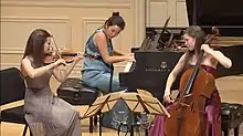 ![]() The Claremont Trio (left to right: Emily Bruskin, Andrea Lam, Julia Bruskin) perform at the Coolidge Auditorium at the Library of Congress in 2015 | |