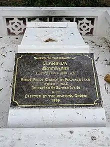 Clarinda (c. 1746 – c. 1806) also known sometimes as Clorinda was a native Indian Maratha Brahmin, a member of a high standing family in the royal court of Tanjore (Thanjavur), South India, in the 18th Century. She later became a dedicated Christian Missionary, moved to Tirunelveli, South India, where she started her missionary work. She was the first Christian convert of Tirunelveli and also built the first Church of Protestant Christian worship, namely, the well known, Clarinda Church, situated near St. John's College, Palayamkottai, Tirunelveli.[1][2]