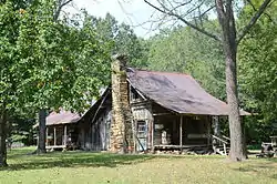 The Clark-King House is a historic house in Stone County, Arkansas, just outside the city limits of Mountain View. Located near the end of County Road 146, it is a single-story log structure with two pens, one built c. 1885 and the other c. 1889. The main (east-facing) facade has a porch extending across the front, under the gable roof that shelters the original pen. The breezeway between the pens has been enclosed with board and batten siding. The first pen was built by P.C. Clark; the second by Rev. Jacob King, a prominent local circuit preacher of the period.[2]