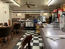 ![]() The counter, part of the dining area, and kitchen (2019) | |