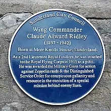 ![]() The blue plaque in Sunderland to commemorate the life of Claude Alward Ridley | |