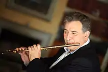 Claudi Arimany i Barceló (born in Granollers, Catalonia, December 29, 1955) is an internationald flautist, considered the direct heir, both in interpretative style and in musical concept, of Jean-Pierre Rampal, his mentor and colleague in many concerts.[1] Since the 1980s he has performed with leading international orchestras as a guest soloist, as well as teaching and working to study and revive pieces for flute.[2]
