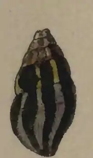 The shell grows to a length of 11 mm. The smooth, obtusely ovate shell is thick and solid. Its color is very dark brown, the nodules are whitish. The whorls are oblique and nodosely plicated round the middle. The anal sinus is rather large.[5]
