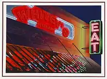 Clay Huffman (1957–2001) was a multi-medium artist, most well known for his vibrant, multicolored serigraphs of local roadside architecture.[1]