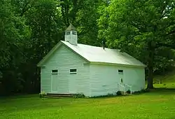 The congregation became inactive in the decades before and after World War II, although its building continued to be maintained and saw periodic use for weddings, homecomings, and other special occasions. In 1976, the building was taken over by the denomination's presbytery. It continues to be used occasionally for funerals and other events.[2][3] The church, its cemetery, and a baptismal pool located at a spring on the church grounds were added to the National Register in 2007.[3][4] Its listing recognized it as "a rare unaltered example of a modest rural church building" that typifies the characteristic "functional and unadorned style" of churches in the area.[3]