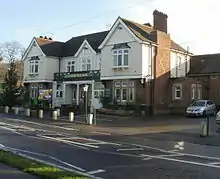 The Lord Nelson Inn, opened 1936, was the most striking and conspicuous landmark building in the centre of Cleeve and well known to travellers on the A370. It was built between 1935–36 to directly replaced a public house by the same name, constructed circa 1799. The current building, designed by R. Edwards for Bristol George’s & Co. Brewery, was a rare local example of an interwar 'reformed' or 'improved' public house still retaining original facade and grounds, complete with function room, skittle alley and rear garden. Latterly owned by Greene King, the pub closed in late 2016. Threatened with demolition by a supermarket and petrol station company, the pub and grounds were designated as an Asset of Community Value under the Localism Act (2011) by North Somerset Council in January 2017.For a period, the empty building was fenced of, and a spray painted 'save our bats' message was on the fence, in protest of demolition. The pub was ultimately demolished in 2021. [18][19][20]