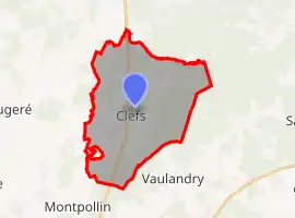 Clefs is a former commune in the Maine-et-Loire department in western France. In January 2013 it merged with Vaulandry to form the commune of Clefs-Val d'Anjou, which merged into the commune Baugé-en-Anjou on 1 January 2016.[2] Its population was 950 in 2019.[1]