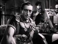 Cleopatra is a 1934 American epic film directed by Cecil B. DeMille and distributed by Paramount Pictures. A retelling of the story of Cleopatra VII of Egypt, the screenplay was written by Waldemar Young and Vincent Lawrence and was based on Bartlett Cormack's adaptation of historical material.[2] Claudette Colbert stars as Cleopatra, Warren William as Julius Caesar, and Henry Wilcoxon as Mark Antony.