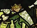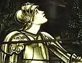 Detail from window illustrating Death of Sir Tristram, designed by Ford Madox Brown (1821–93) for William Morris. From building in Bradford area.