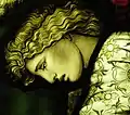 Detail of figure looking down from Crucifixion window by Edward Burne-Jones 1876 for William Morris. From St James Church, Brighouse, nr Bradford.