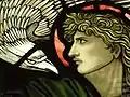 Detail from stained glass war memorial window designed 1921 by John Henry Dearle for William Morris. From Temple Street Methodist Chapel, Bradford area.