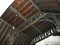 The vestibule and staircase show the Victorian eclectic Gothic Revivalist taste. The hammer-beam roof over the staircase imitates the 15th century, the staircase window the 14th century, and the vestibule arches the 13th century.[5]