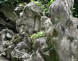 Weather-sculpted moorland stones at entrance to grounds of the museum.