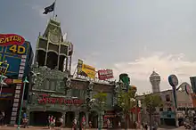There are five year-round haunted houses in the Clifton Hill area. The House of Frankenstein, located next to Ripley's 4D Moving Theater, Dracula's Haunted Castle, next to the Big Top Entertainment Centre, and the Haunted House, are on Clifton Hill itself, while Nightmares Fear Factory is located on Victoria Avenue. Two additional haunted houses were previously located on Victoria Avenue: Screamers House of Horrors, which was renamed Haunted Asylum shortly before its closure in 2014, and Creatures of the Night, which had the same owners and acted as a second part of Screamers. Following the closure of Haunted Asylum, the building became a hybrid haunted house/zombie paintball shooting range known as Screaming Tunnels, named after the famously haunted tunnel of the same name in the northwest corner of Niagara Falls, but that attraction closed in 2018 and is now a complex containing a Popeyes and an Osmow's Shawarma restaurant. Creatures of the Night was replaced by a 4D theatre known as Dino Rampage 4D, and is now an Outback Steakhouse. There was previously another alien-themed haunted house known as Alien Encounter at the corner of Clifton Hill and Victoria Avenue.[4] This attraction closed in 2006 and the site is now occupied by a currency exchange.[5][4]