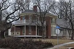 Belle Maison is a historic home located at Liberty, Clay County, Missouri. 404 S. Leonard Street Built in 1875. Its style is Italianate Asymmetrical This house consists of a two-story polygonal wing attached to a rectangular wing. The two-story veranda with railed porch and entrances for cross ventilation reflects a Southern influence. Interesting features include the stone-incised fluer-de-lis keystones. Source: Liberty's Living Legacy – 19th Century Houses and Buildings 1820 – 1899 Written by: Christopher Harris c. 2004