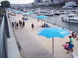- Riga, Andy (March 2, 2012). "Montreal's Old Port beach: sand, boardwalk, umbrellas – but no swimming and it won't be free". Montreal Gazette. Archived from the original on August 26, 2013. Retrieved March 2, 2012.