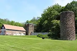 The Clove Furnace Ruin in Arden, New York, United States, was a longtime smelting site for iron ore mined from nearby veins in what is now Harriman State Park. It is located on Arden Station Road just east of the New York State Thruway, and can easily be seen from the highway. It was built in 1854 by Robert & Peter Parrott, who also owned and operated numerous mines in the area, known collectively as the Greenwood Iron Works.[1] Together with the Greenwood Furnace (c.1810), located roughly one half mile east of Clove, these two furnaces produced iron which supplied the Parrott's West Point Foundry at Cold Spring, NY. The foundry produced the famous and highly effective Parrott Rifle (cannon) utilized by the Union army during the Civil War. The furnace shut down permanently, shortly after Robert Parrott's death in 1877.[2]